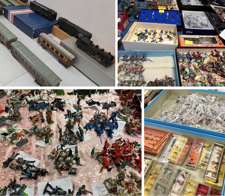 Trenini di vecchi plastici e di tutte le marche più significative, insieme a soldatini nelle varie divise rendevano animate le discussioni fra i collezionisti